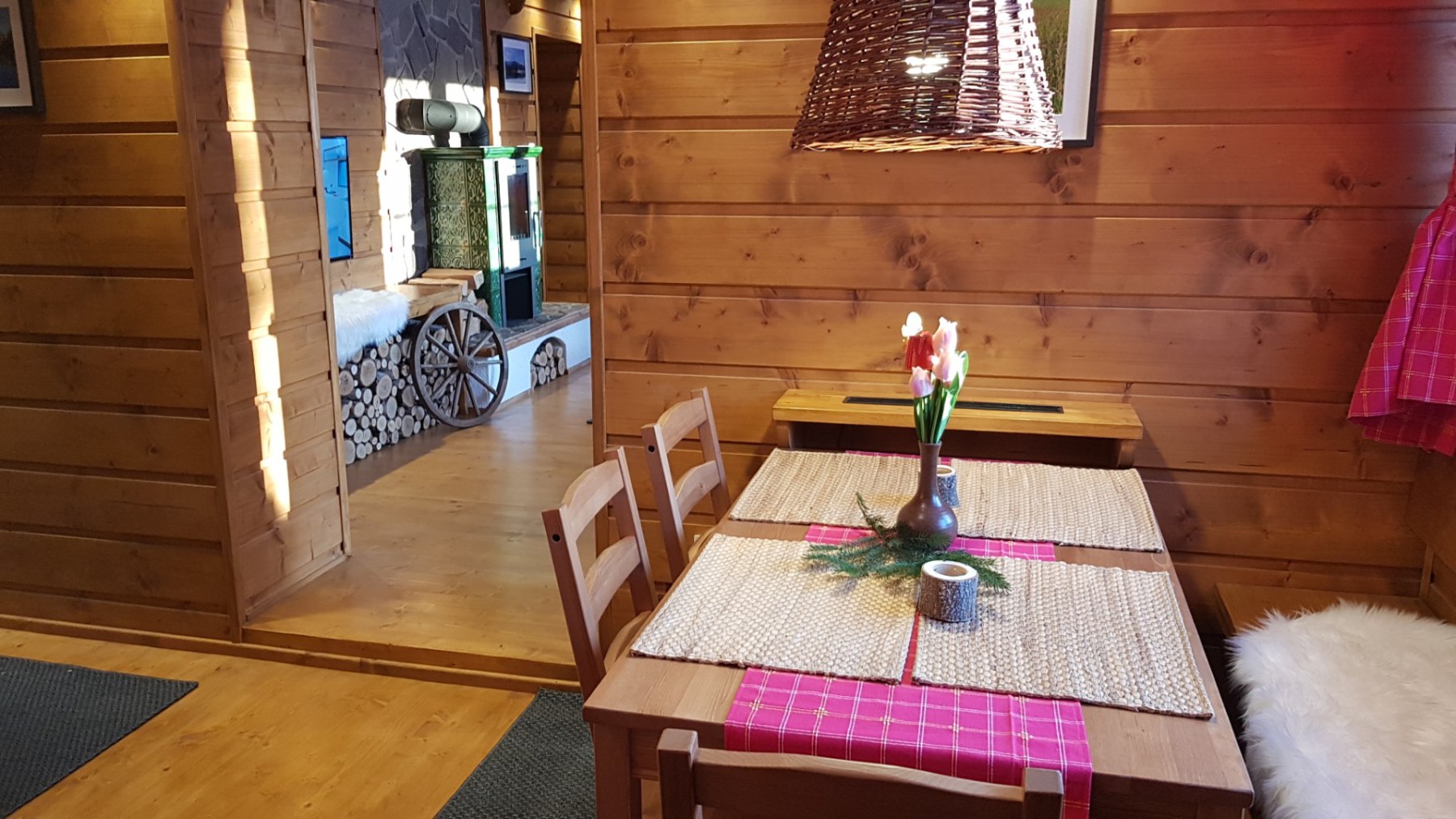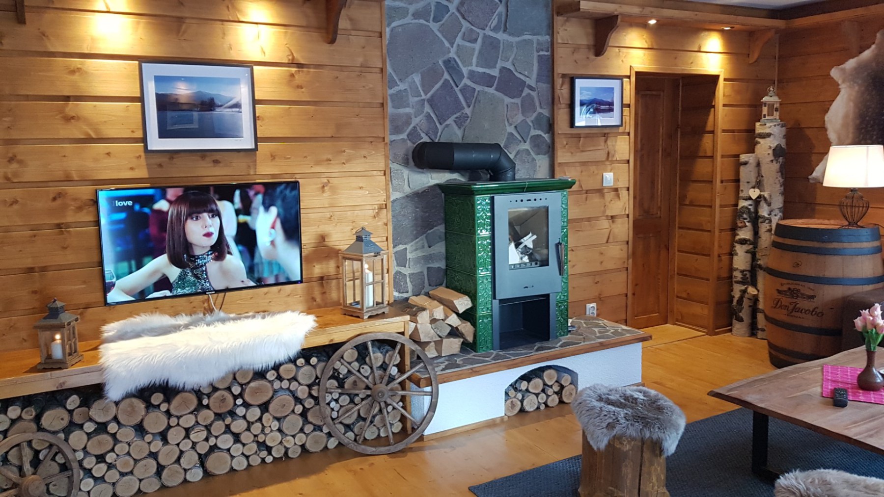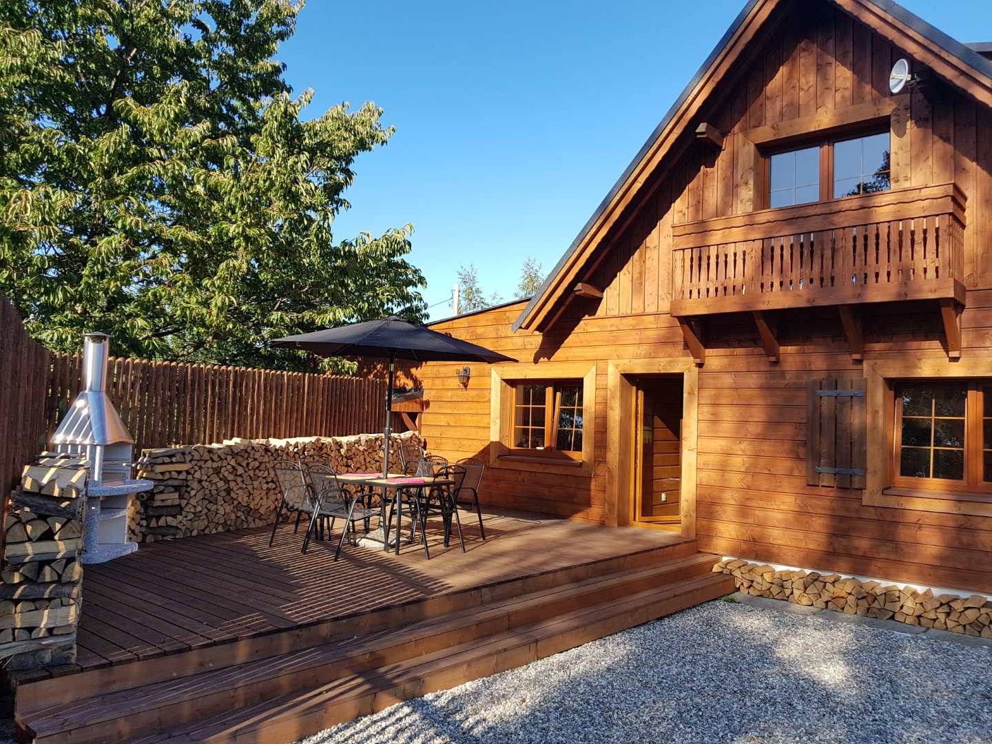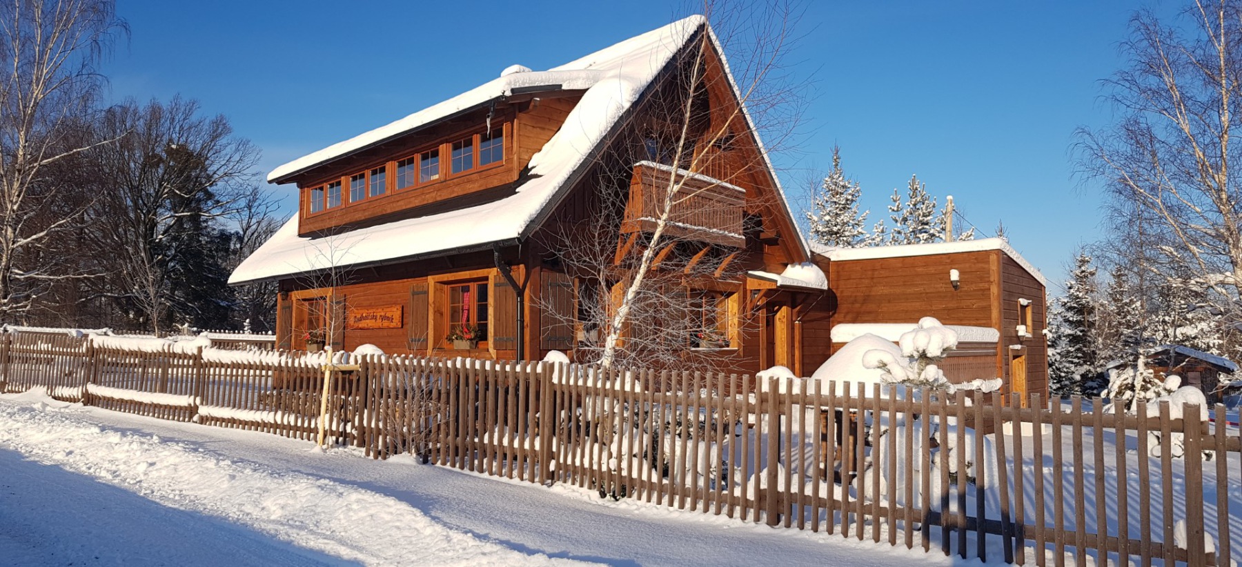 Součástí chaty je samostatná standardně vybavená kuchyň, koupelna a dvě WC. TV je v každém pokoji a WI-FI zdarma. U chaty je k dispozici terasa s venkovním posezením a krbem. Parkování je přímo u chaty.