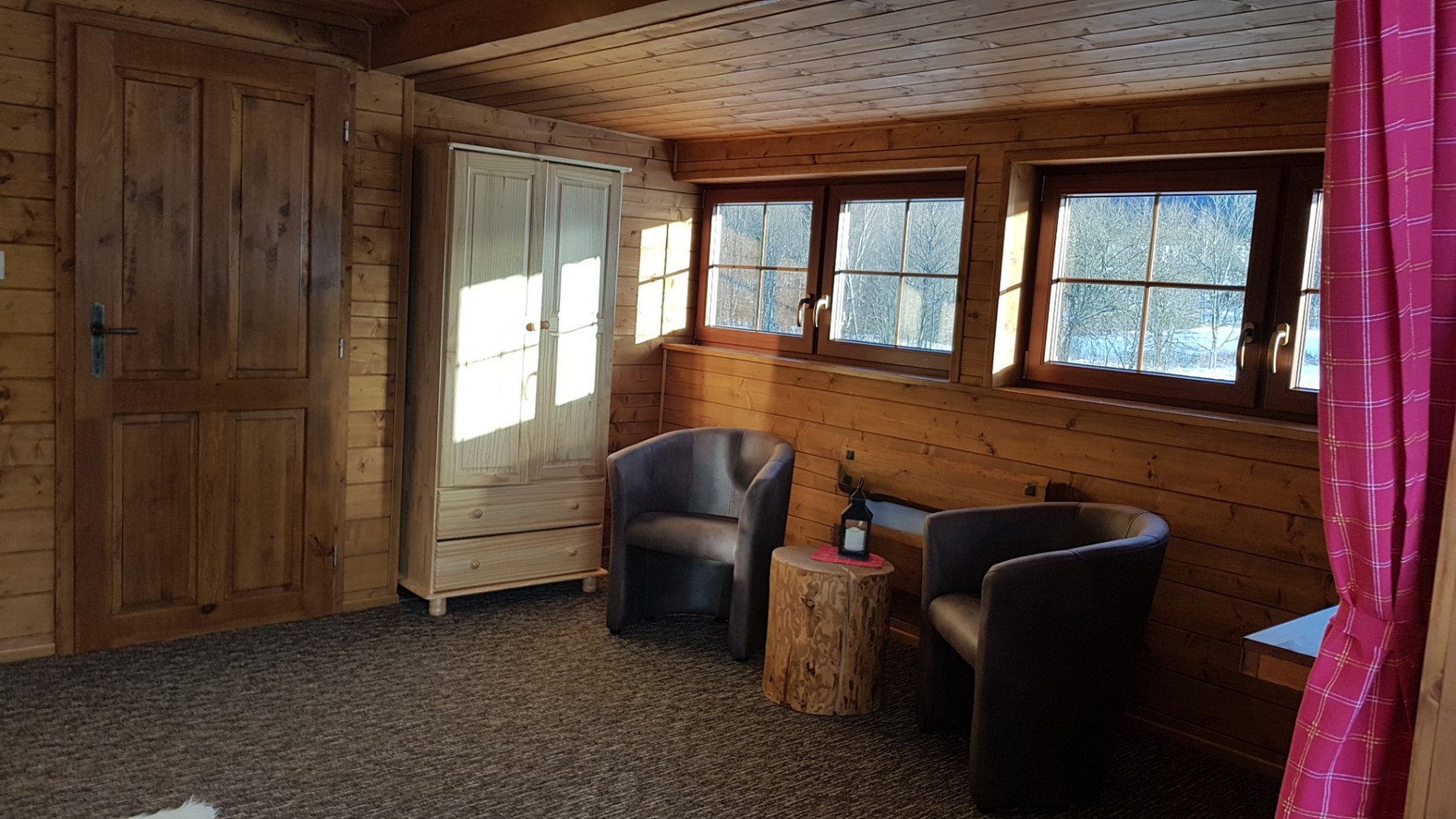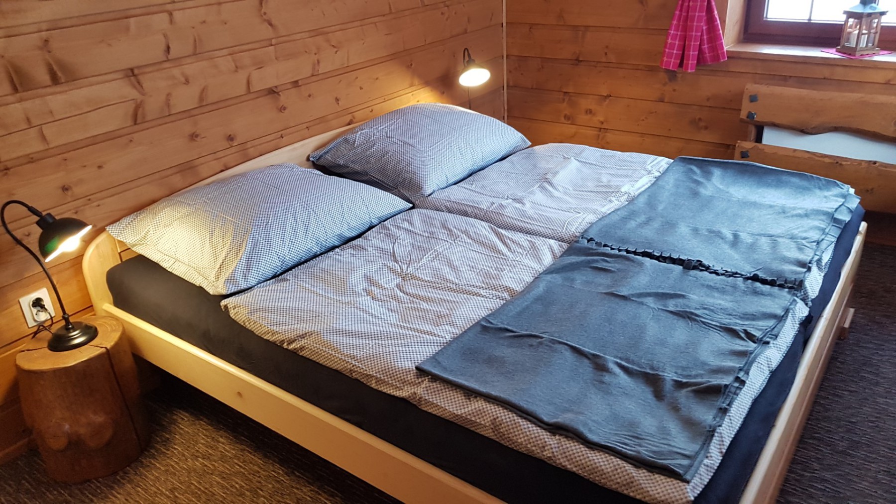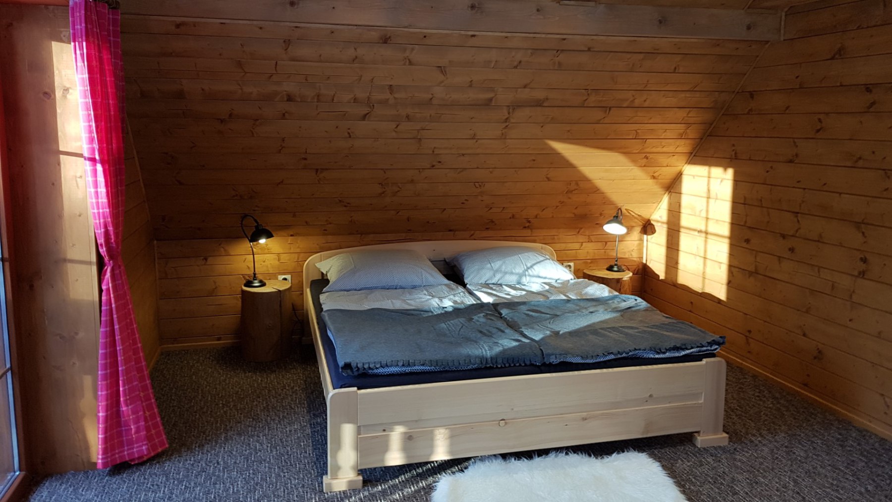 Chata 1 nabízí ubytování pro 8 osob. Ve třech ložnicích poskytuje ubytování pro 6 osob, dvě osoby na přistýlce v obývacím pokoji.