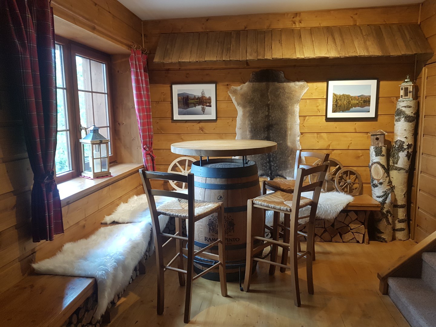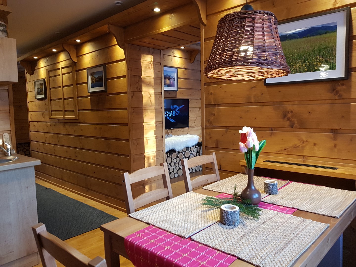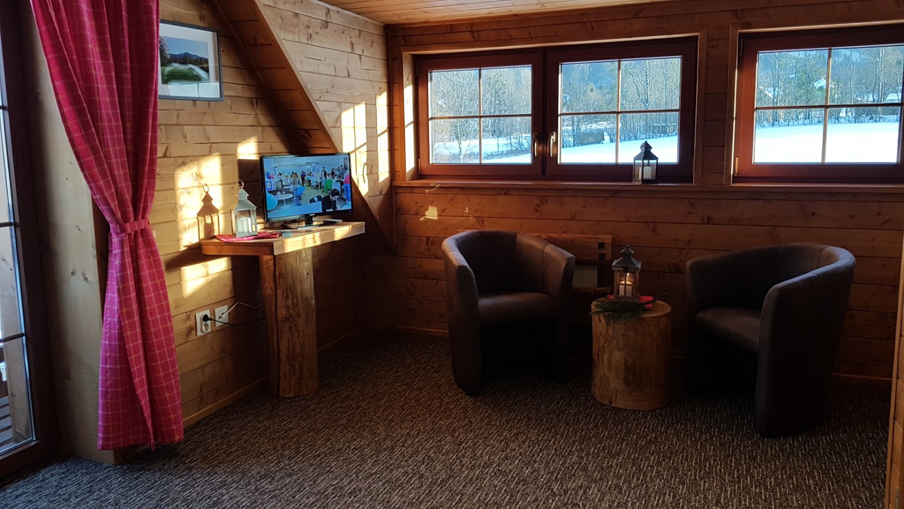 Chata 1 nabízí ubytování pro 8 osob. Ve třech ložnicích poskytuje ubytování pro 6 osob, dvě osoby na přistýlce v obývacím pokoji.