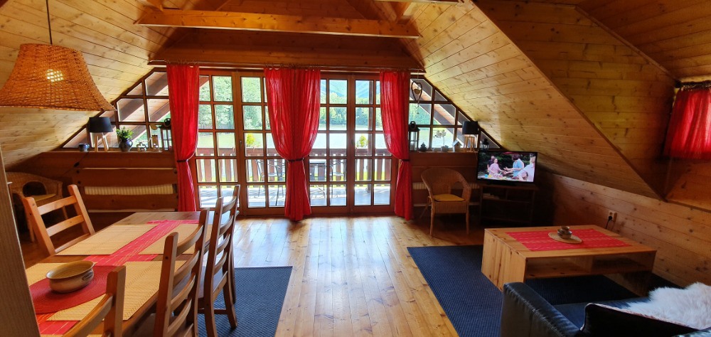 Apartmán se nachází v prvním patře rybářské chaty. Nabízíme ubytování pro 6 osob. Apartmán má dvě ložnice se dvěma postelemi. Dvě osoby na přistýlce v obývacím pokoji. Součástí apartmánu je standardně vybavená kuchyňka, koupelna s WC, povlečení a ručníky. TV je v každém pokoji, WI-FI zdarma. U chaty je k dispozici venkovní posezení s krbem a ohniště. Parkovací stání u apartmánu.